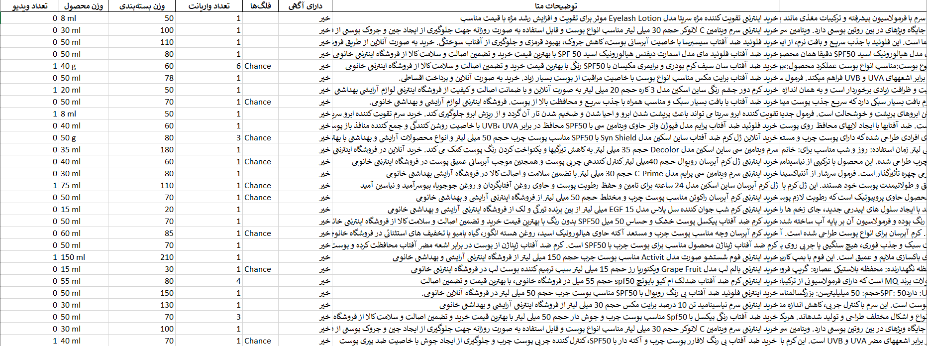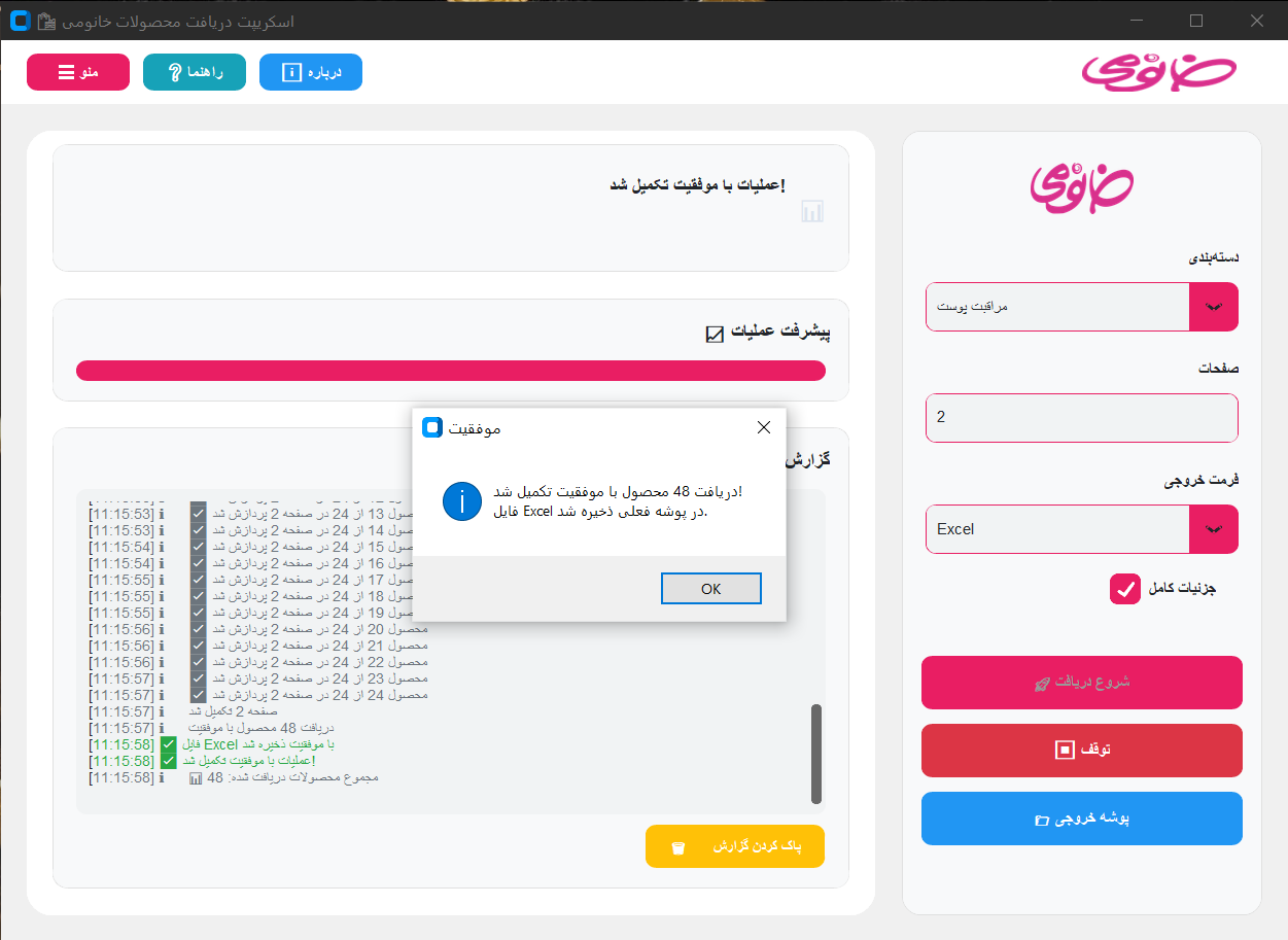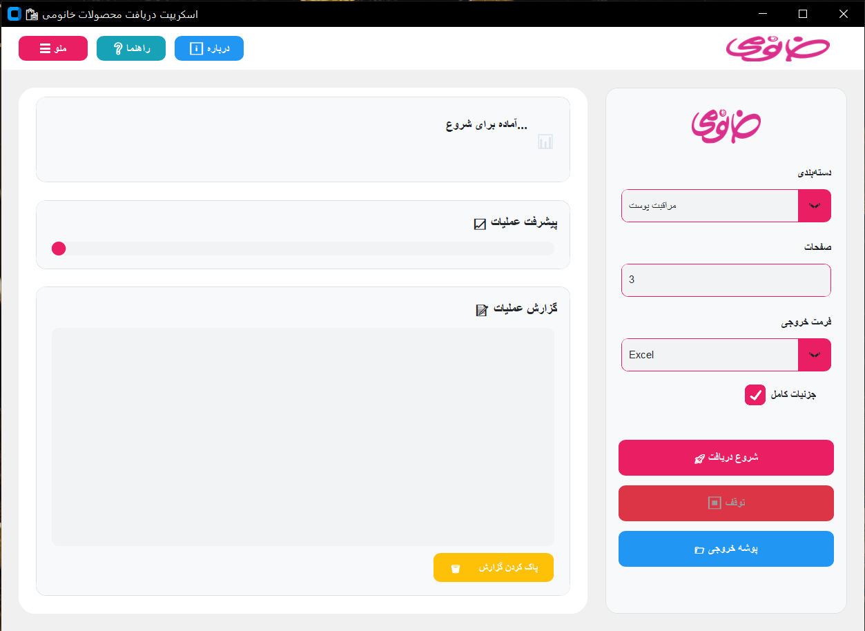 ربات هوشمند استخراج محصولات خانومی با رابط کاربری مدرن و قابلیتهای پیشرفته برای دریافت، پردازش و ذخیره اطلاعات محصولات آرایشی و بهداشتی در فرمتهای مختلف.